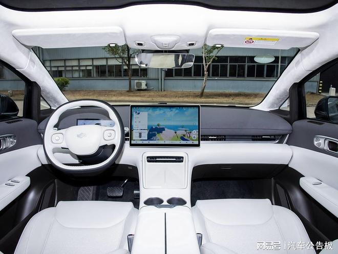 车内造型则以简约为主,官方表示灵感来自于航空公务舱,不过好像也没看出来。具体来看,悬浮式大屏和液晶仪表不用多说,科技感很强,而且它的中控屏还可旋转。车内几乎没有物理按键和旋钮,空调出风口虽不是贯穿式的设计,但横向的内凹设计,也让车内层次感凸显了不少。方向盘是双辐的设计,而且上面的按键也很简洁。另外,灰/白的配色,看上去也很高级。