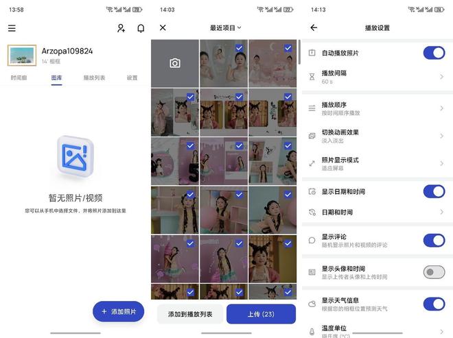 一直没说的智能连接其实是通过Arzopa APP来进行的传输,APP的操作非常简单,连接好相框之后就能选择手机中的照片进行传输,刚好我女儿前几天过了5岁的生日,手机中有一些艺术照可以上传。